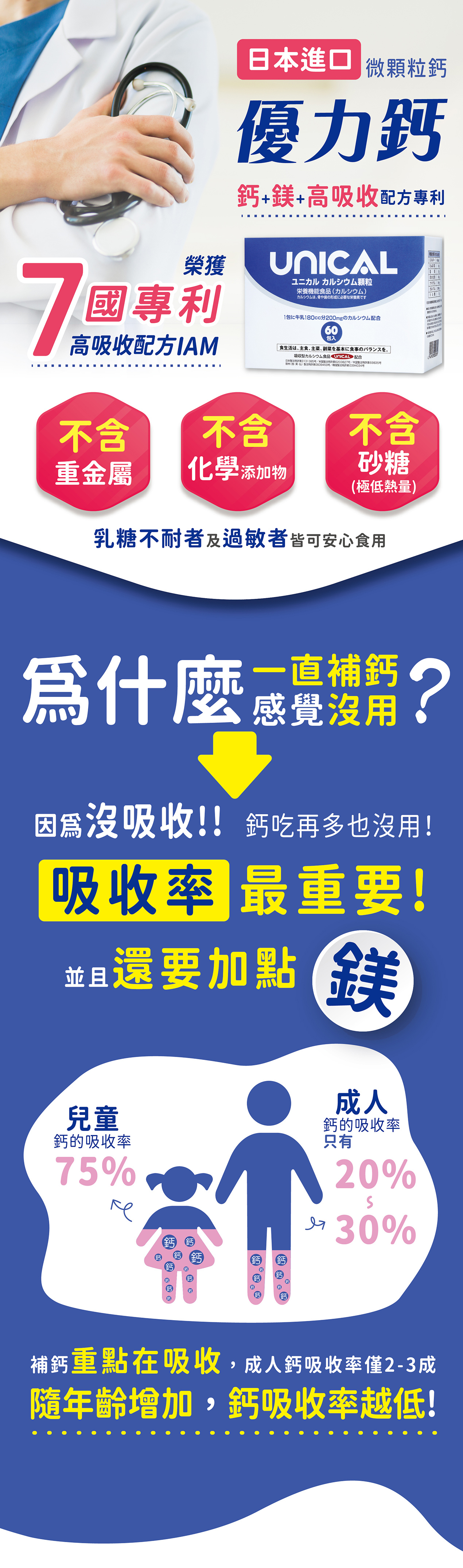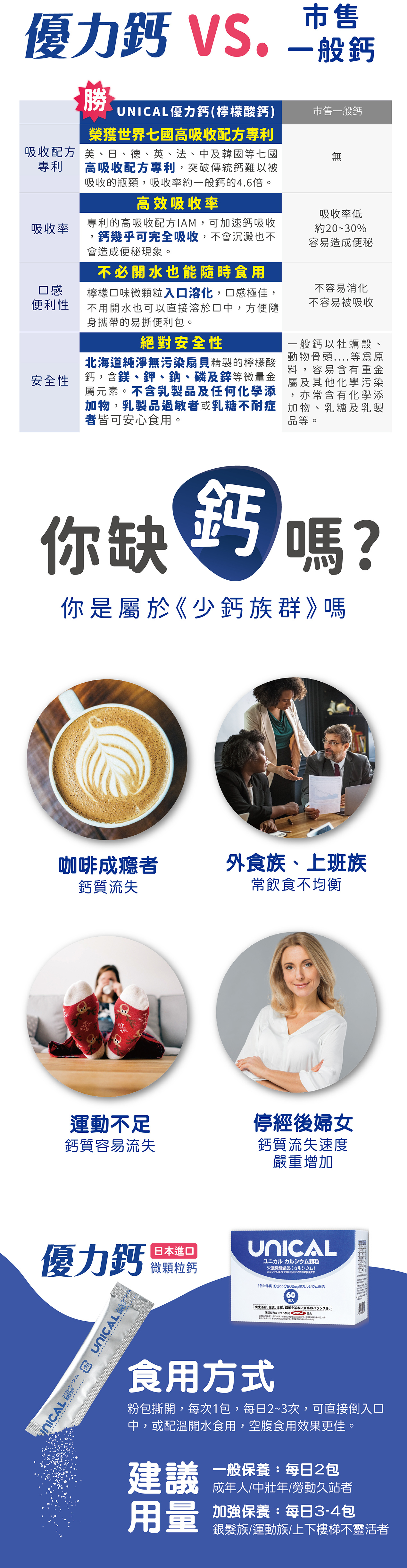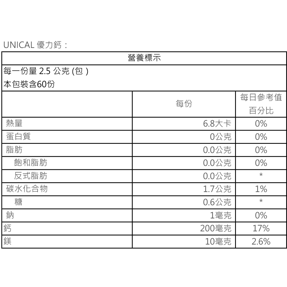品名:UNICAL® 優力鈣微顆粒鈣60包