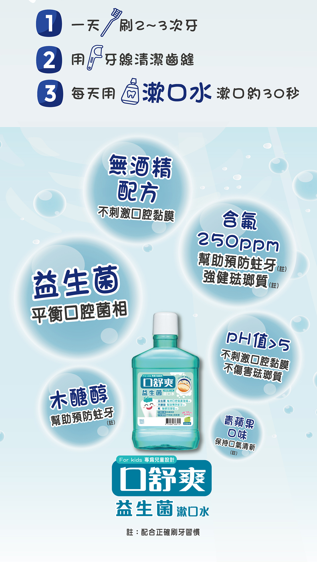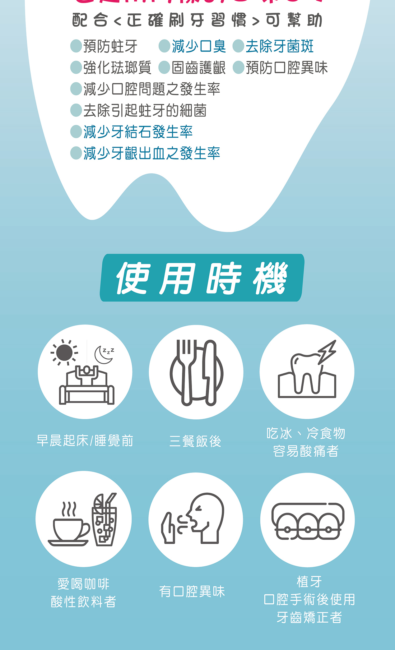 ‧每日2~3次,配合刷牙於餐後效果更佳。