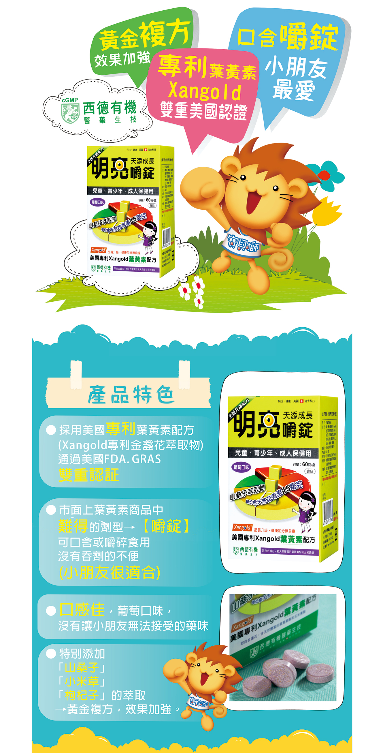 ‧嚼錠外觀之深褐色點狀顆粒為天然葉黃素,請安心食用。