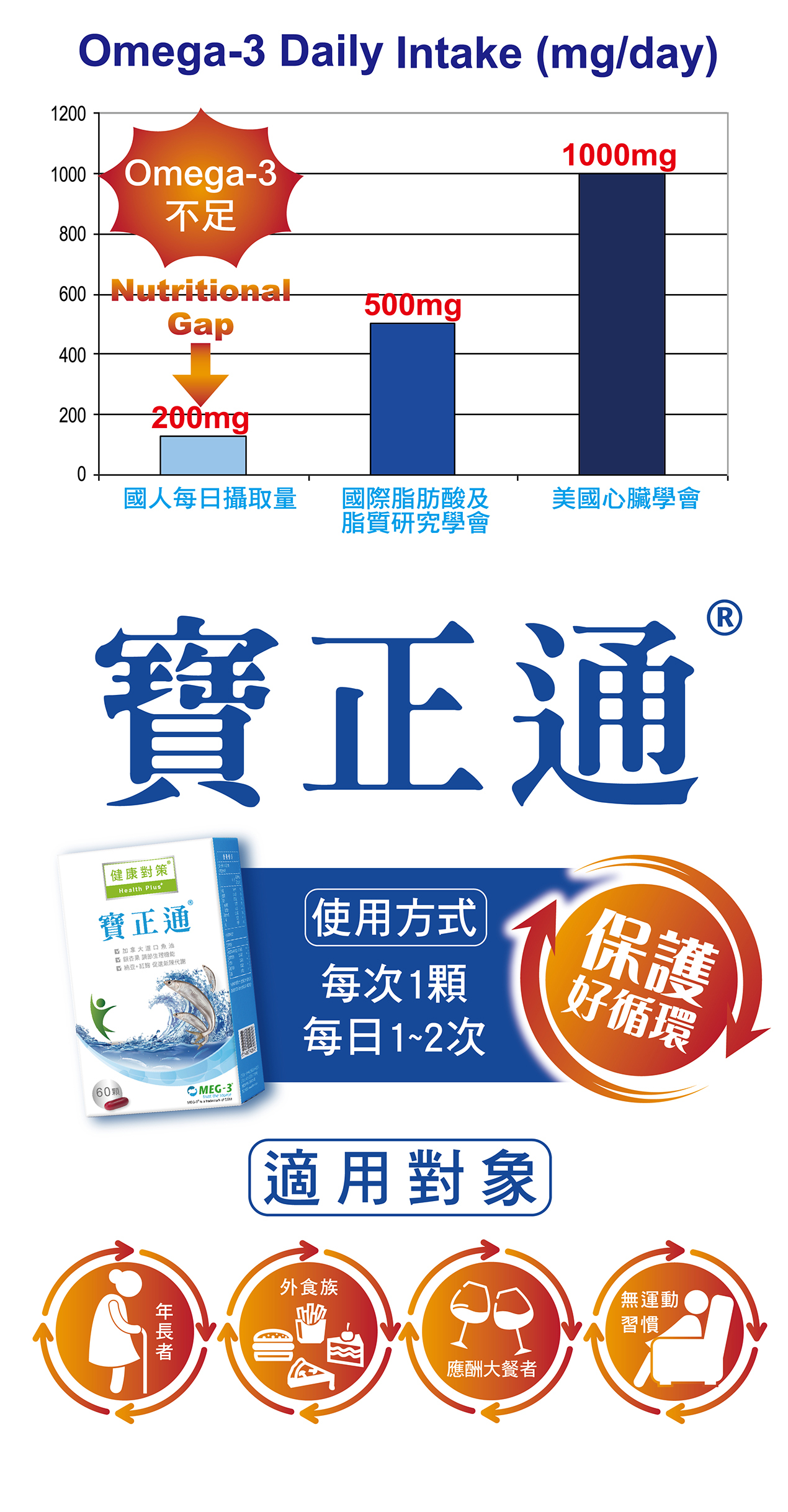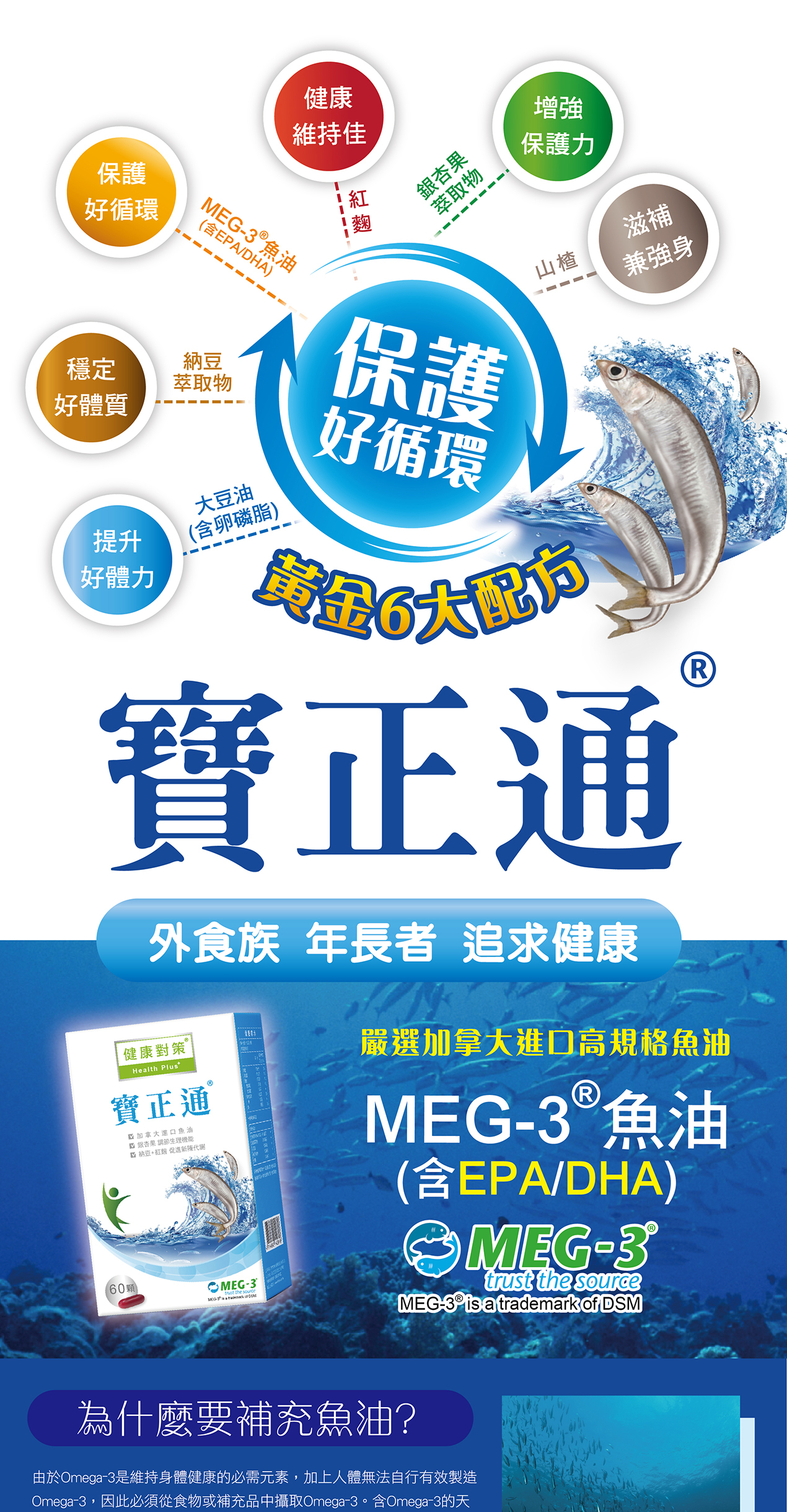 內容物:MEG-3®魚油(EPA:DHA=33:22)、銀杏果、大豆油、納豆萃取物(含納豆激酶)、紅麹、山楂。