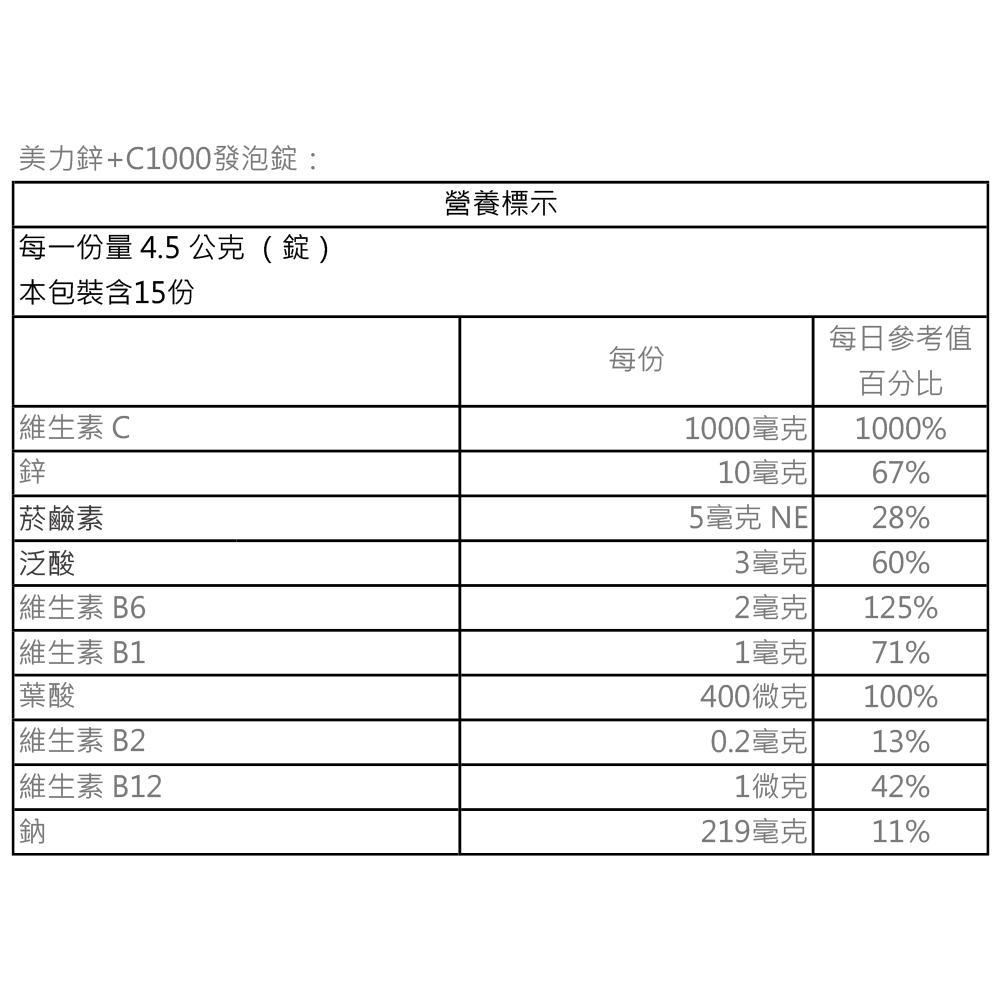 營養添加劑(維生素C)、調味劑(檸檬酸)、膨脹劑(碳酸氫鈉)、甜味劑(甘露醇)、紅葡萄果汁粉【紅葡萄濃縮汁、麥芽糊精、黏稠劑(辛烯基丁二酸鈉澱粉)、調味劑(檸檬酸)、葡萄香料、葡萄果皮色素】、甜味劑(山梨醇)、營養添加劑(葡萄糖酸鋅)、葡萄香料【黏稠劑(辛烯基丁二酸鈉澱粉)、麥芽糊精、葡萄香料、β-環狀糊精、乳化劑(脂肪酸甘油酯)、葡萄果皮色素、抗氧化劑(維生素E)】、甜味劑(蔗糖素)、甜味劑(醋磺內酯鉀)、營養添加劑【蒸鹼素(菸鹼醯胺)、泛酸(本多酸鈣)、維生素B6、維生素B1、葉酸、維生素B2、維生素B12】