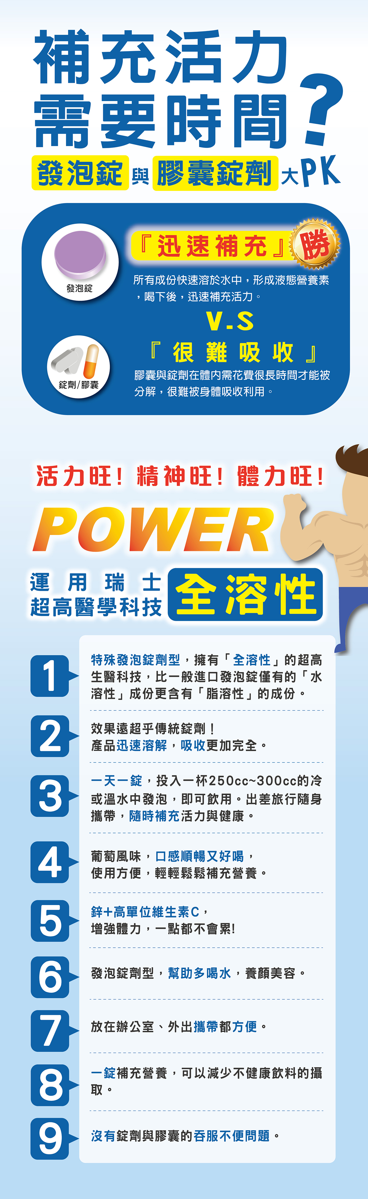 食用方式:取ㄧ錠置入一杯250c.c冷水中(水溫勿超過40℃),待完全溶解後即可飲用。