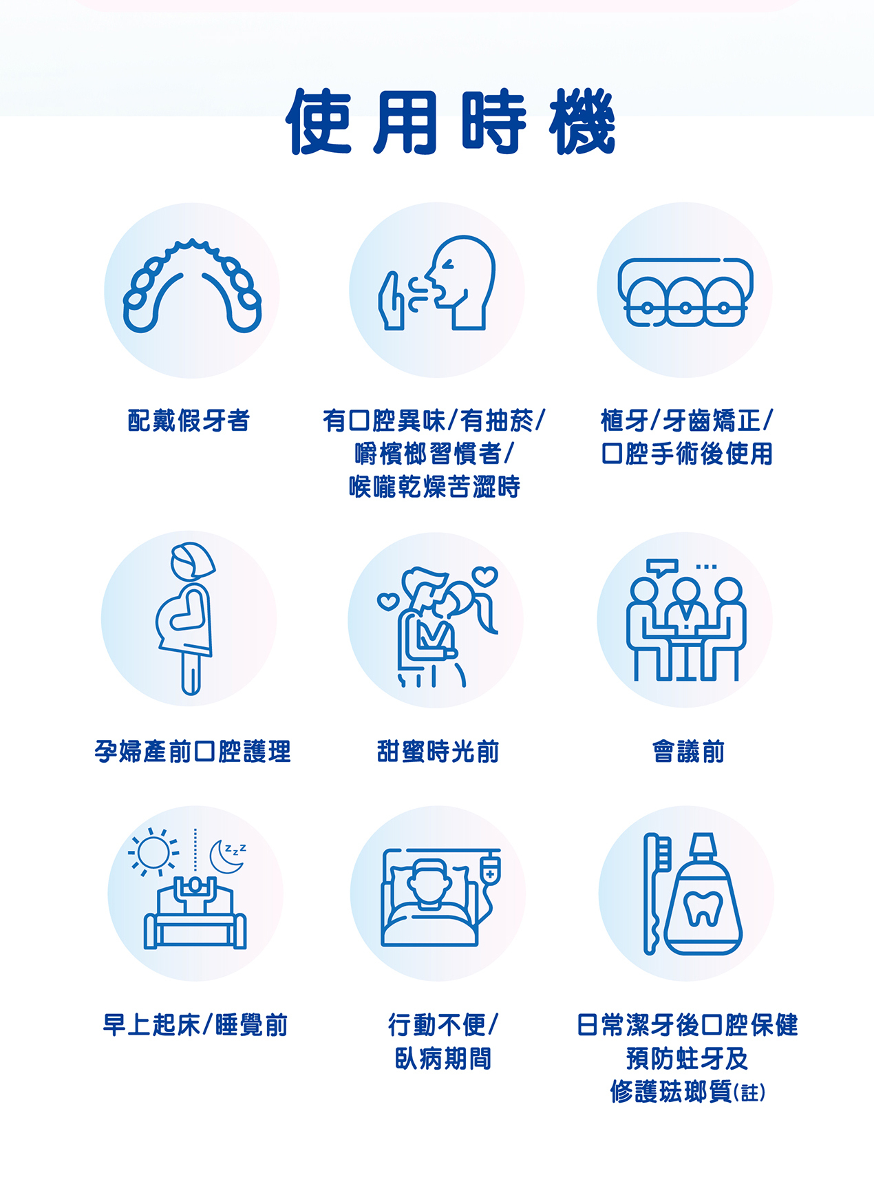 ‧使用漱口水30分鐘內,請勿喝水及吃東西。